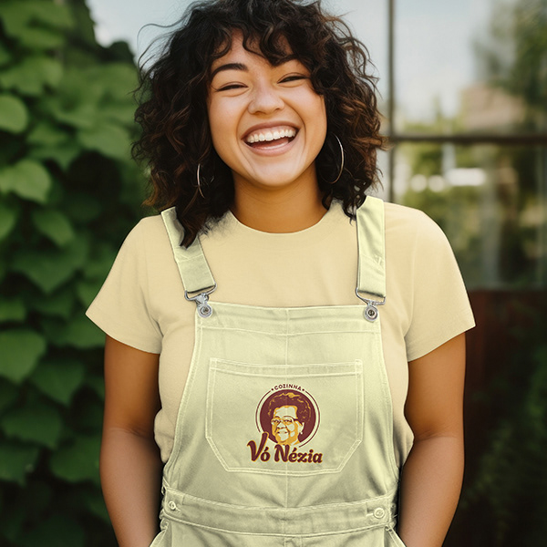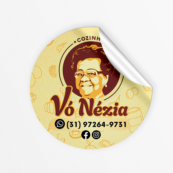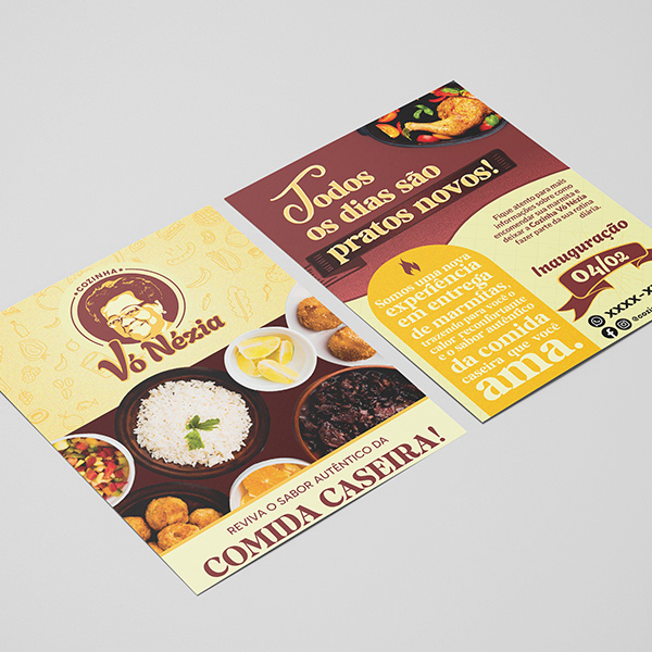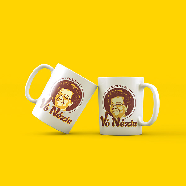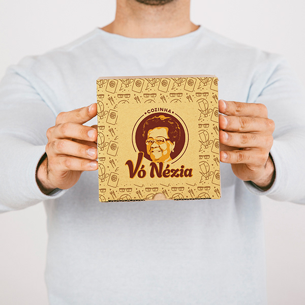Foi usado na criação a própria Vó Nézia em estilo vintage, com as cores fortes representando a tradição da boa comida caseira.